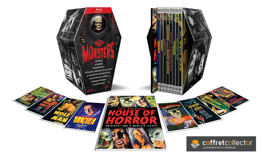 Le 2 novembre 2012, le studio Universal a sorti un beau coffret en forme de cercueil regroupant pas moins de 8 grands classiques de films de monstres pour la 1ère fois en Blu-ray en VF et VOST. Un grand hommage à ses plus beaux projets.