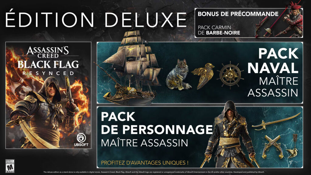 • Pack carmin de Barbe-Noire (bonus de précommande) : costume pour Edward, épée et pistolet aux avantages uniques